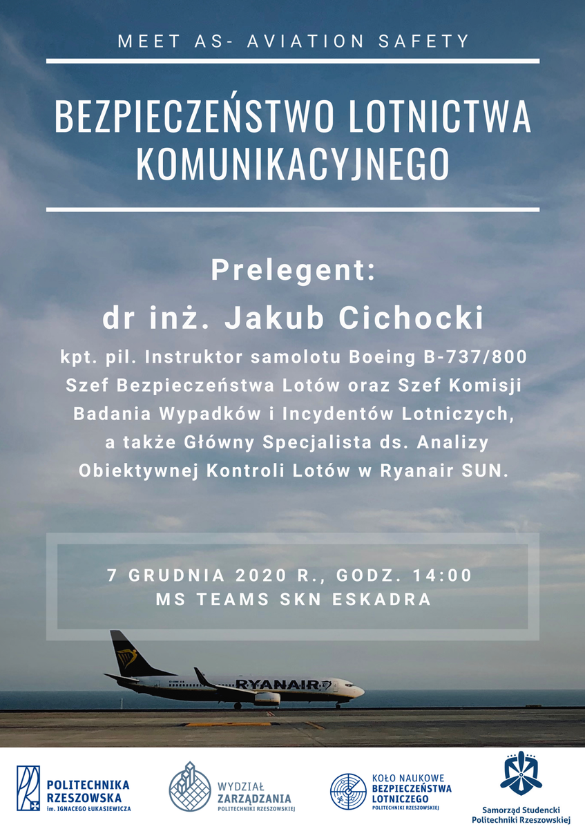 Podczas kolejnego spotkania, organizowanego przez Studenckie Koło Naukowe Bezpieczeństwa Lotniczego Eskadra, poruszona została problematyka bezpieczeństwa lotnictwa cywilnego.